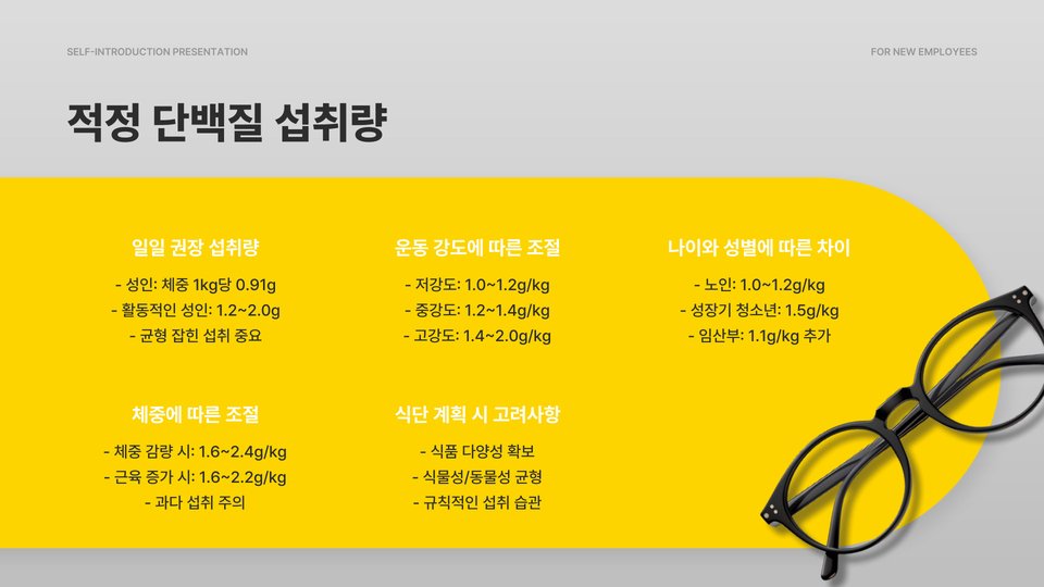 - 단백질 섭취는 대사 속도를 증가시키고, 지방 연소를 돕습니다.