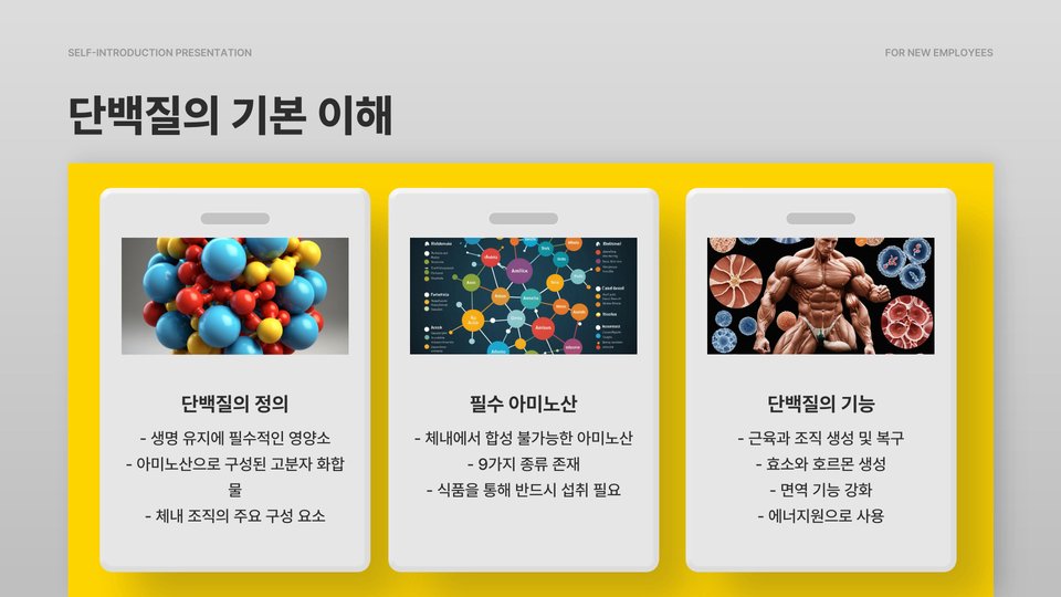 - 단백질은 신체 기능을 위한 필수 성분입니다.
