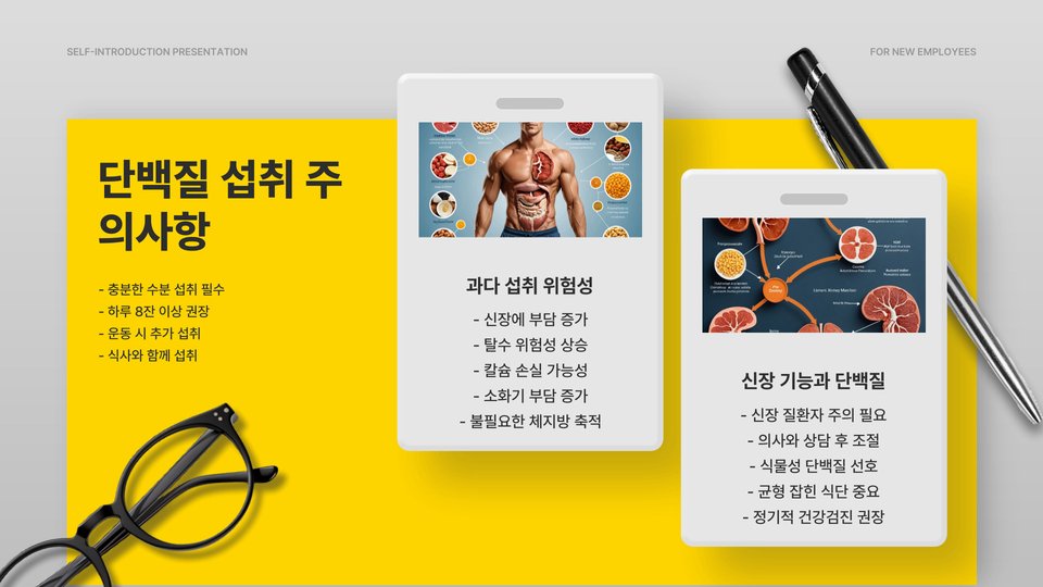 - 과도한 단백질 섭취는 신장에 부담을 줄 수 있습니다.