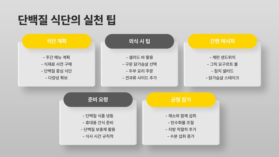 중요 팁: 단백질 식단을 시작하기 전, 자신의 목표와 필요를 이해하고 전문가와 상담하는 것이 좋습니다.
