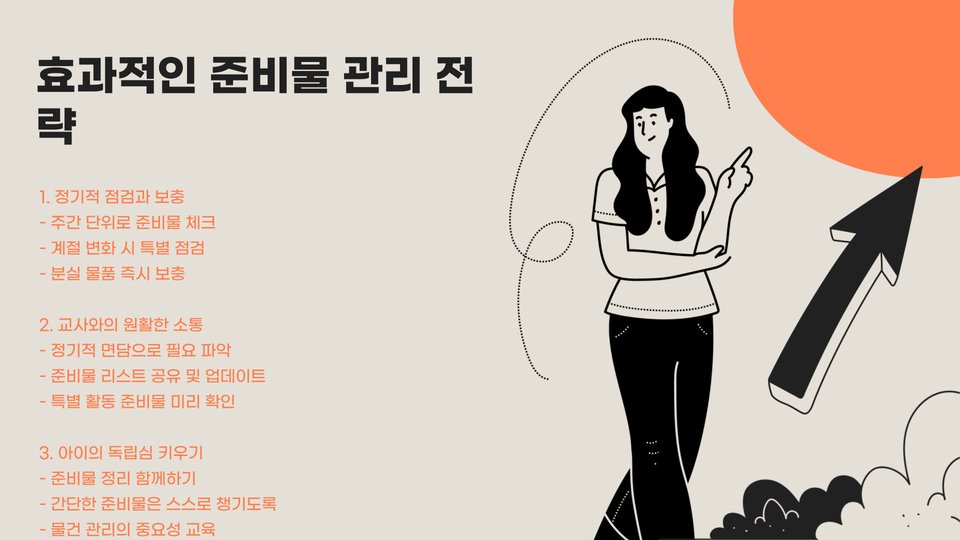 셋째, 필요한 물품이 다 준비되었다면, 모든 물품을 아이와 함께 점검하는 시간을 가지세요. 아이가 준비물에 대해 익숙해질 수 있도록 도와주는 것이 중요합니다.