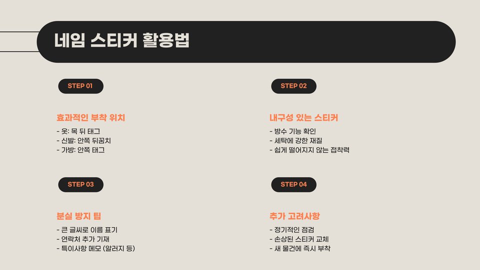 - 이름 스티커로 개인 물건을 구분하세요.