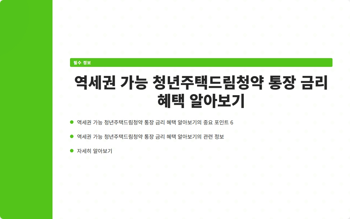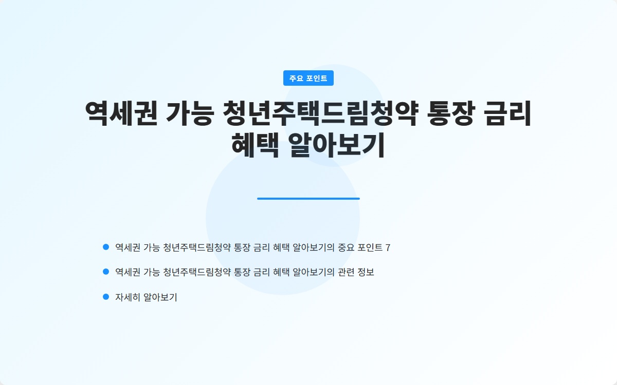 Tags: 청약통장, 주택드림, 청년주택, 금리혜택, 역세권, 집 마련, 금융 상품, 자산 형성, 주거 안정, 청년 지원 정책