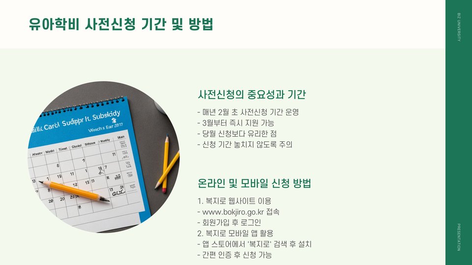 유아학비사전신청을 준비하면서 가장 먼저 고려해야 할 사항은 필요한 서류입니다. 일반적으로 신청서, 가족 소득 증명서, 거주지 증명서 등 여러 가지 서류가 필요합니다. 각 지역의 요구사항에 따라 다를 수 있으므로 미리 조사하고 준비해야 합니다. 필요한 서류 목록을 작성하고 체크리스트를 만들어 진행하는 것이 효율적입니다.