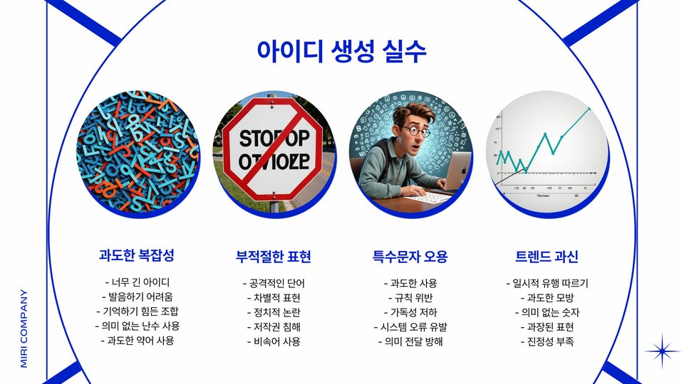 - 간결하고 독창적인 아이디 선택이 필요합니다.