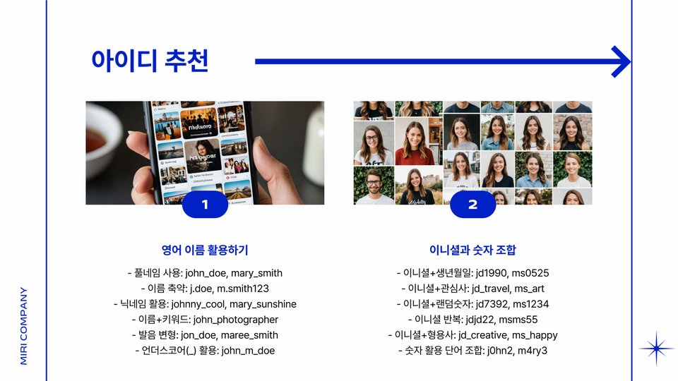 인스타그램 아이디는 당신의 첫인상을 결정짓는 요소입니다. 특히 비즈니스 계정의 경우, 아이디는 소비자에게 신뢰를 줄 수 있는 중요한 요소입니다. 독창적이고 기억에 남는 아이디는 팔로워를 유치하고 브랜드의 인지도를 높이는 데 큰 도움이 됩니다. 또한, 아이디는 검색 엔진 최적화(SEO)에도 영향을 미치므로, 신중하게 선택해야 합니다.