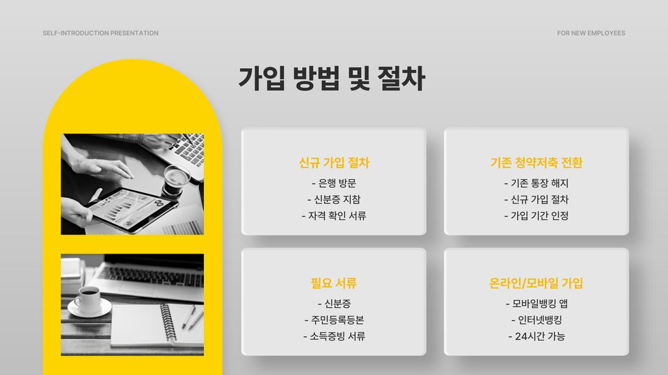- 청약통장을 개설하고 관련 서류를 준비합니다.