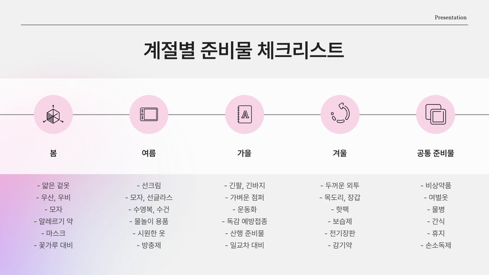 - 준비물 리스트를 작성하고 필수 항목 파악하기