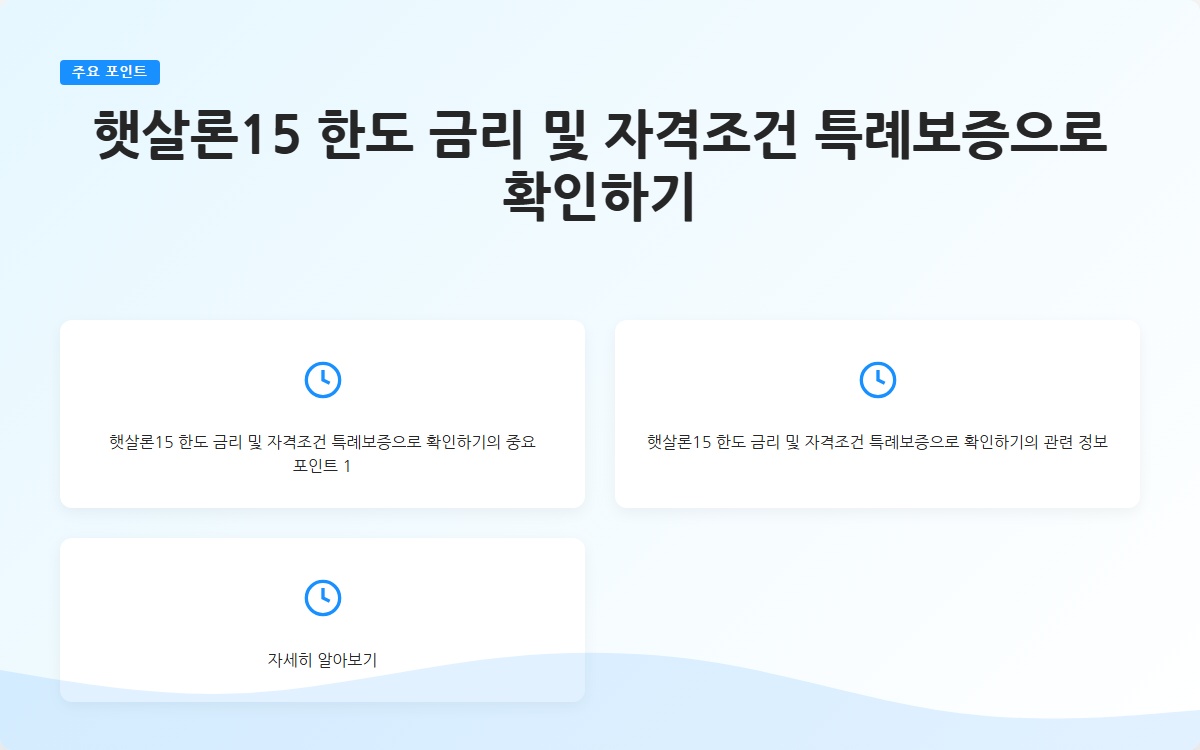 햇살론15는 저신용자와 저소득자를 위한 매우 유용한 금융 지원 프로그램입니다. 직접보증을 통해 대출의 문턱을 낮추고, 낮은 금리와 유연한 상환 조건으로 많은 사람들에게 도움이 되고 있습니다. 신청하기 전 자격 조건과 절차를 충분히 이해하고 준비하는 것이 중요합니다.