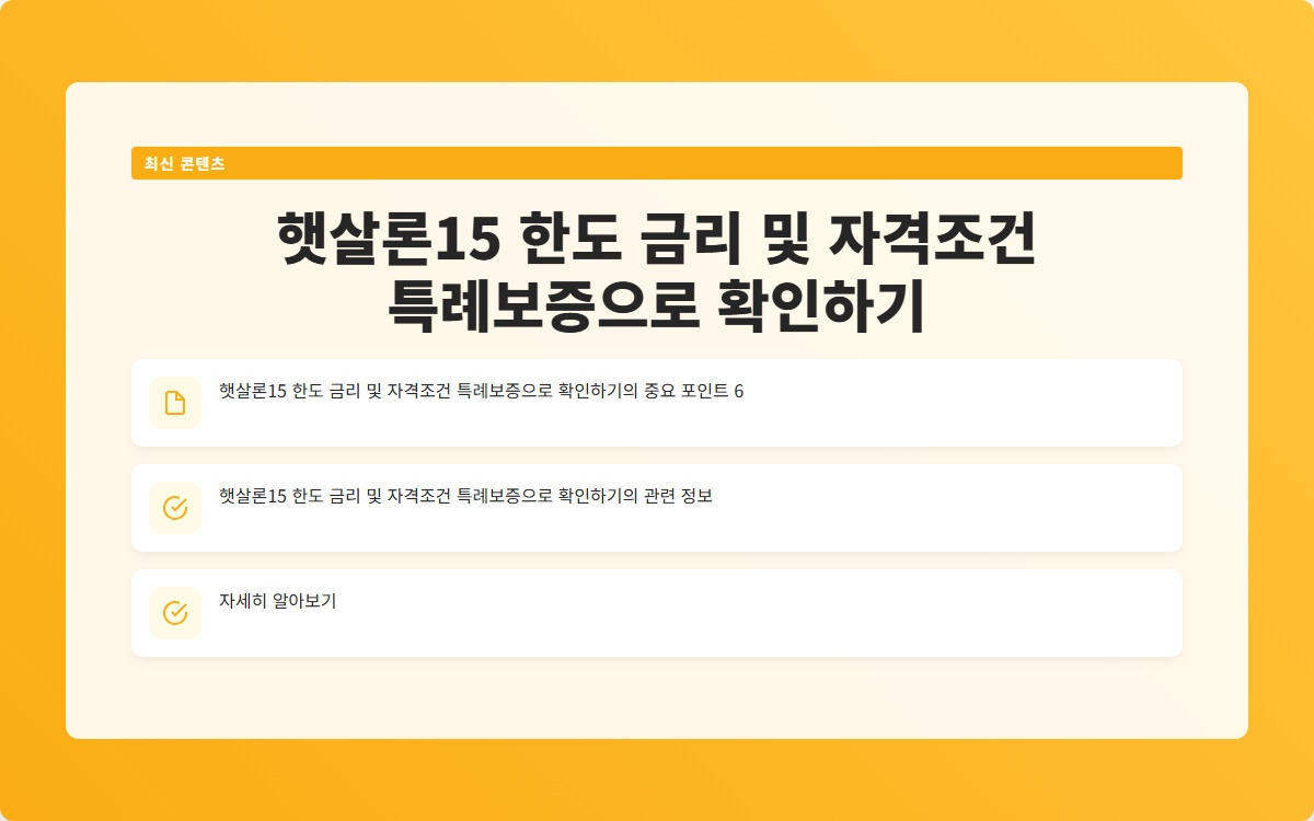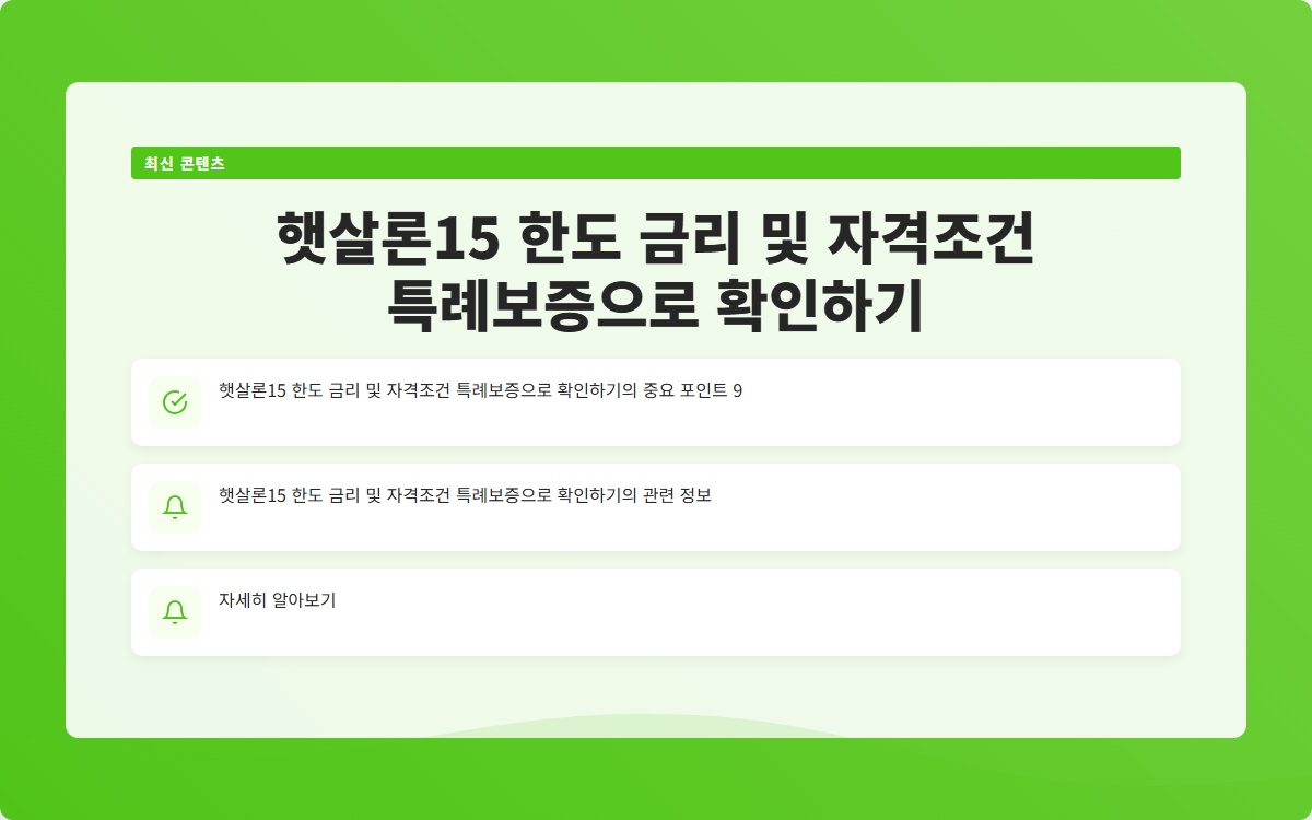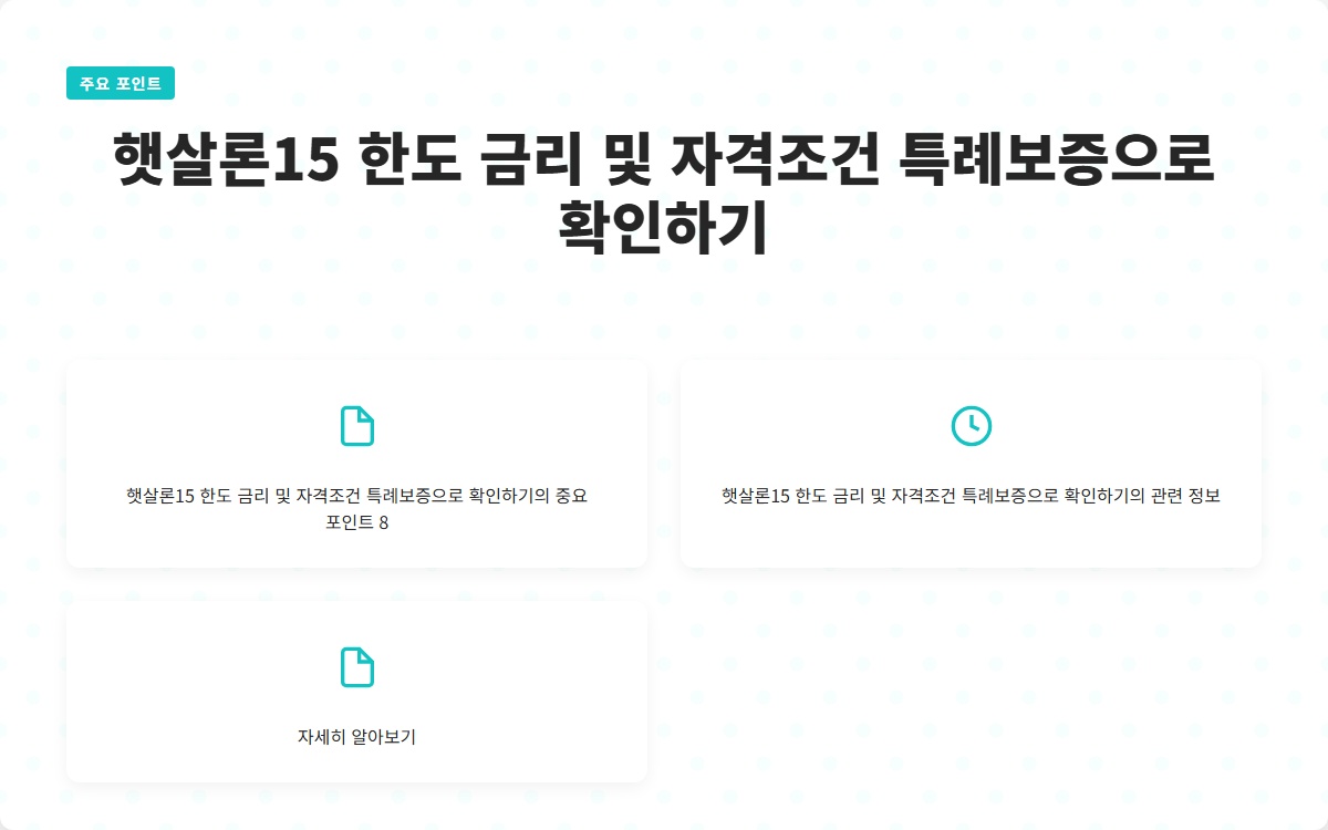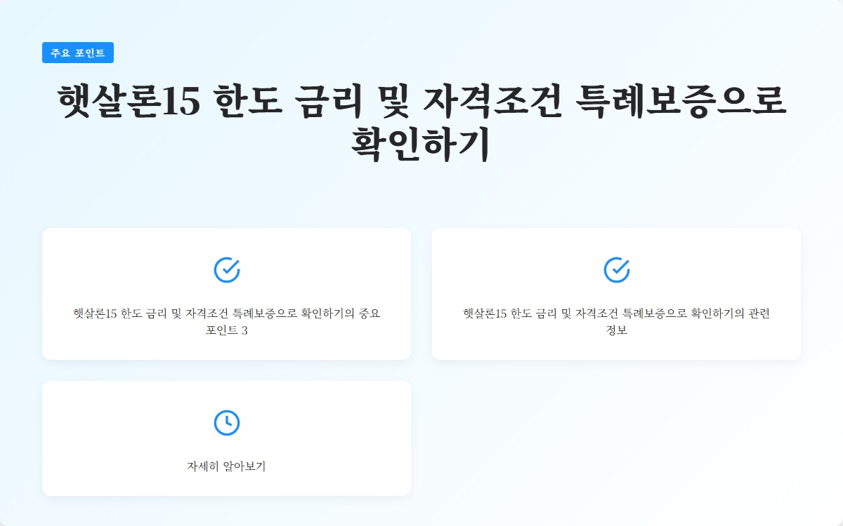 결론적으로, 햇살론15는 저소득층과 신용 불량자에게 실질적인 금융 지원을 제공하는 중요한 대출 프로그램입니다. 대출 한도와 금리, 그리고 자격 조건을 잘 이해하고 준비하여 재정적 안정성을 확보하는 것이 무엇보다 중요합니다. 특히, 특례보증의 이점을 최대한 활용하여 필요한 금액을 지원받는 것이 좋습니다. 지금 바로 자신의 조건을 점검하고, 서류를 준비해보세요.