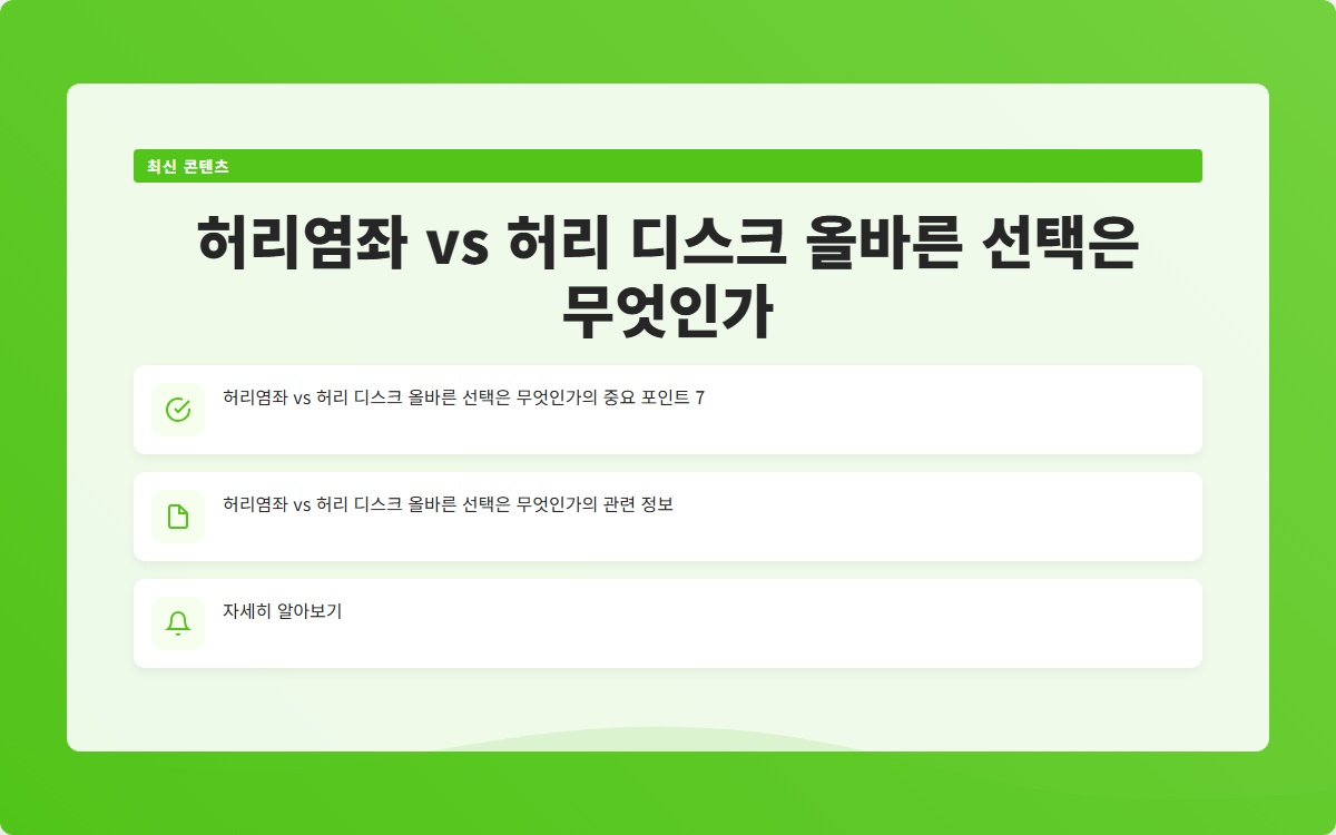 허리염좌와 허리 디스크의 차이를 이해하고, 적절한 치료법을 선택하여 건강을 회복하는 것이 중요합니다. 오늘날의 선택이 내일의 건강을 좌우합니다.