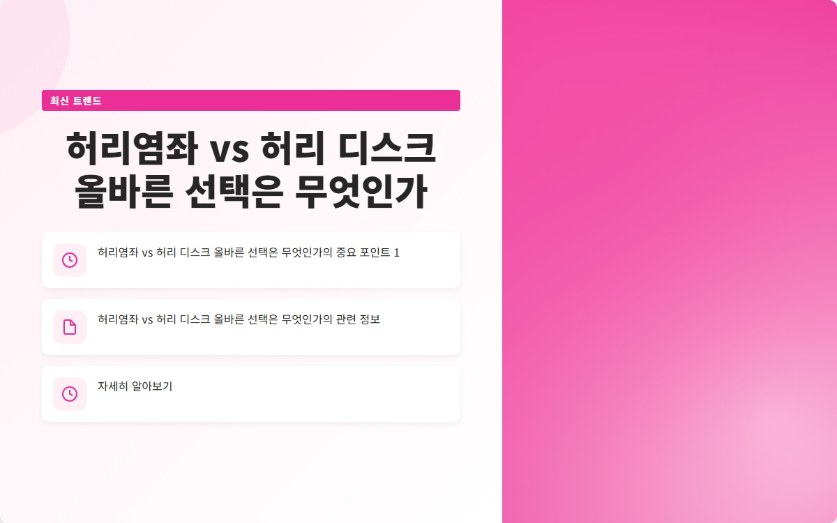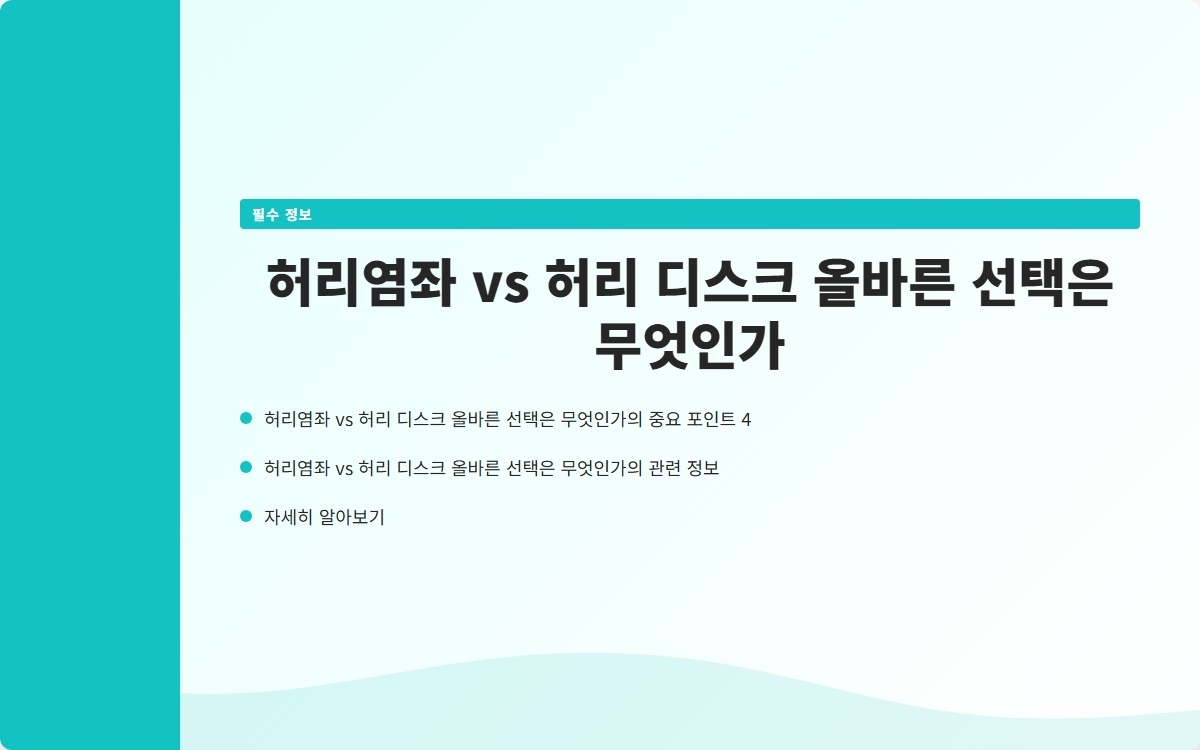 허리염좌와 허리 디스크의 차이를 이해하고, 적절한 치료법을 선택하여 건강을 회복하는 것이 중요합니다. 오늘날의 선택이 내일의 건강을 좌우합니다.