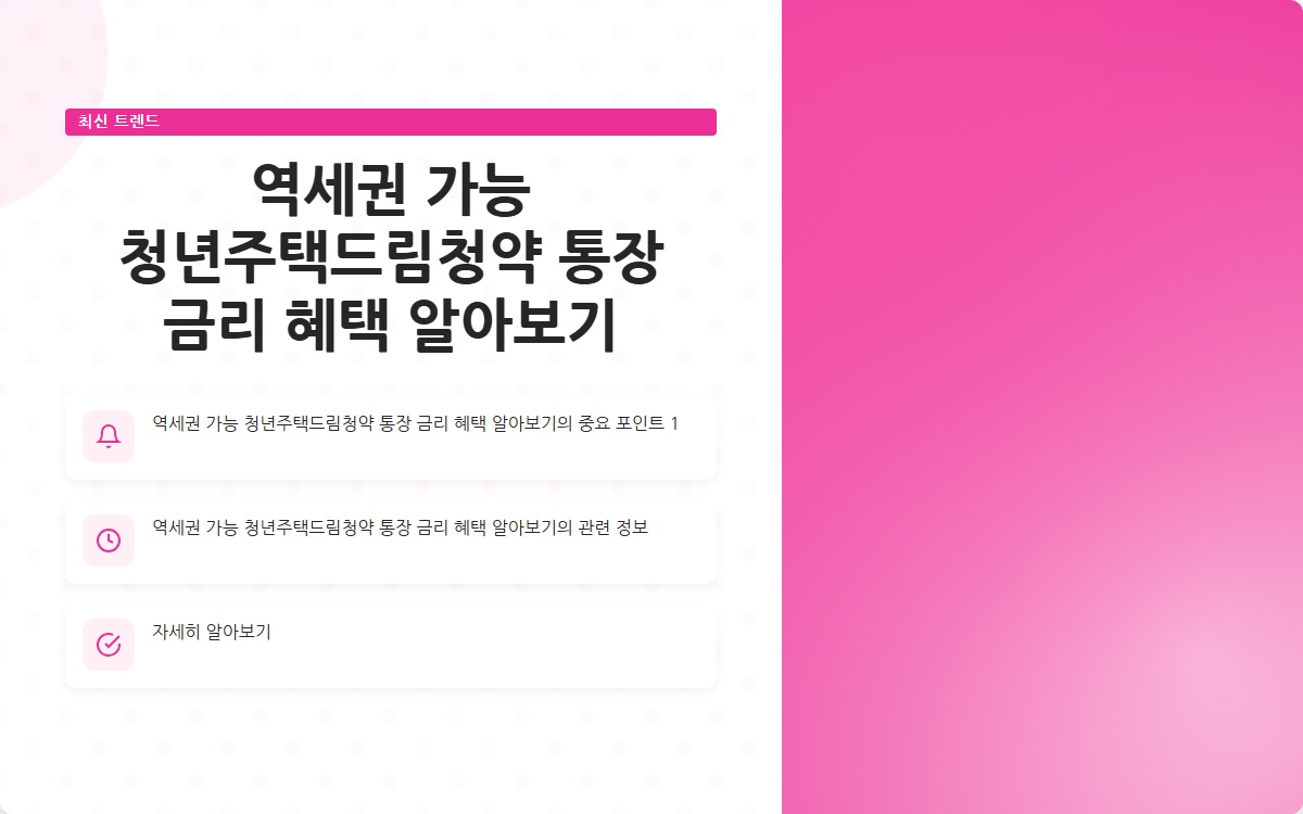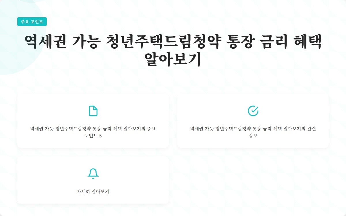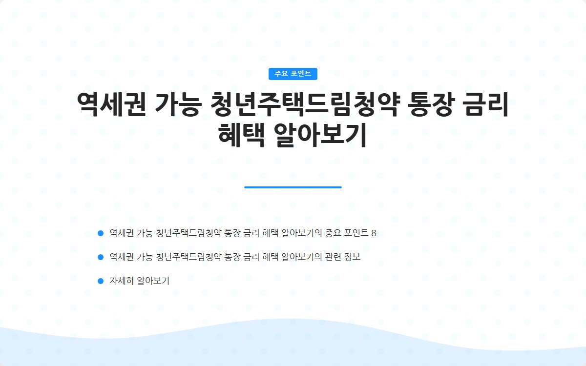 Tags: 청약통장, 주택드림, 청년주택, 금리혜택, 역세권, 집 마련, 금융 상품, 자산 형성, 주거 안정, 청년 지원 정책