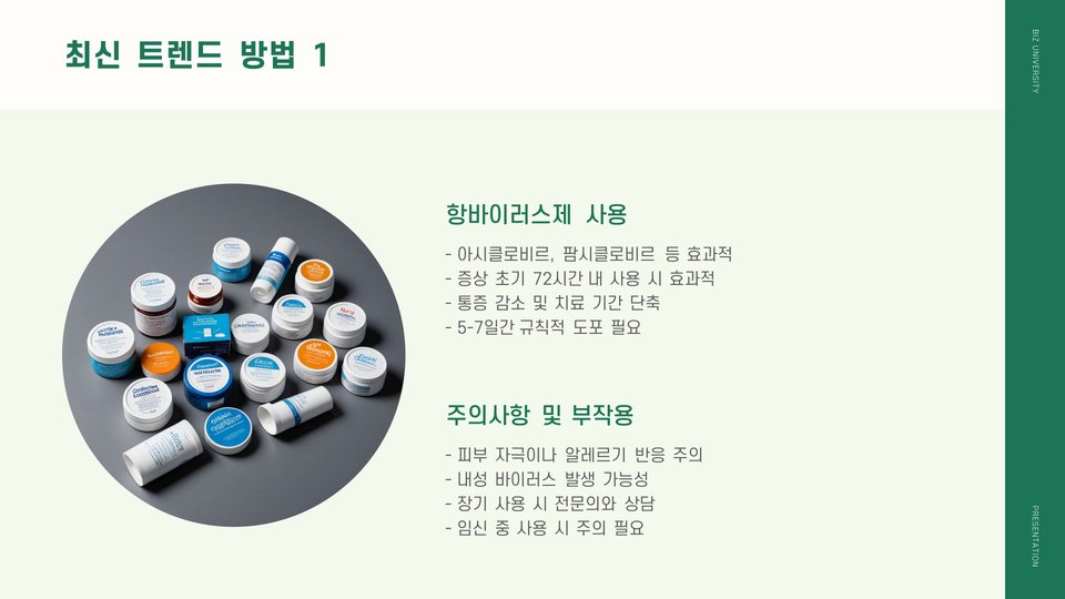 - 항바이러스제 크림 – 조기 치료 및 회복 촉진
