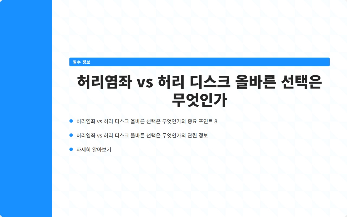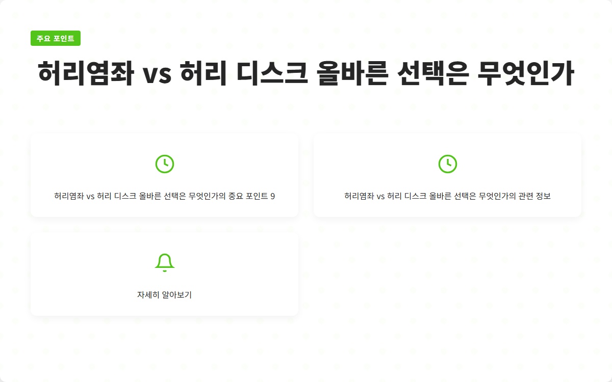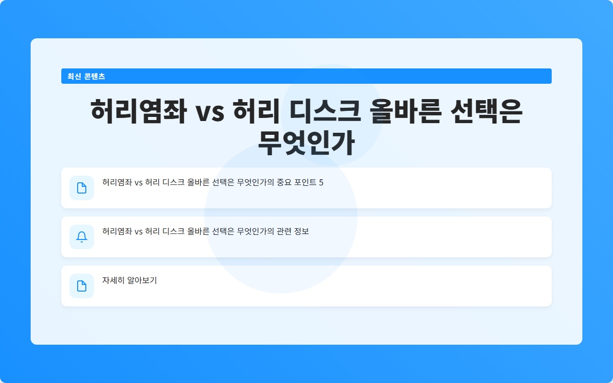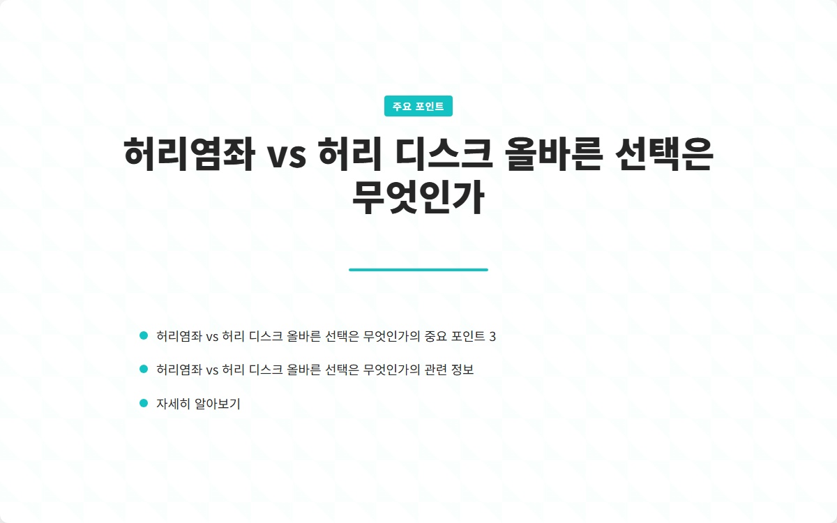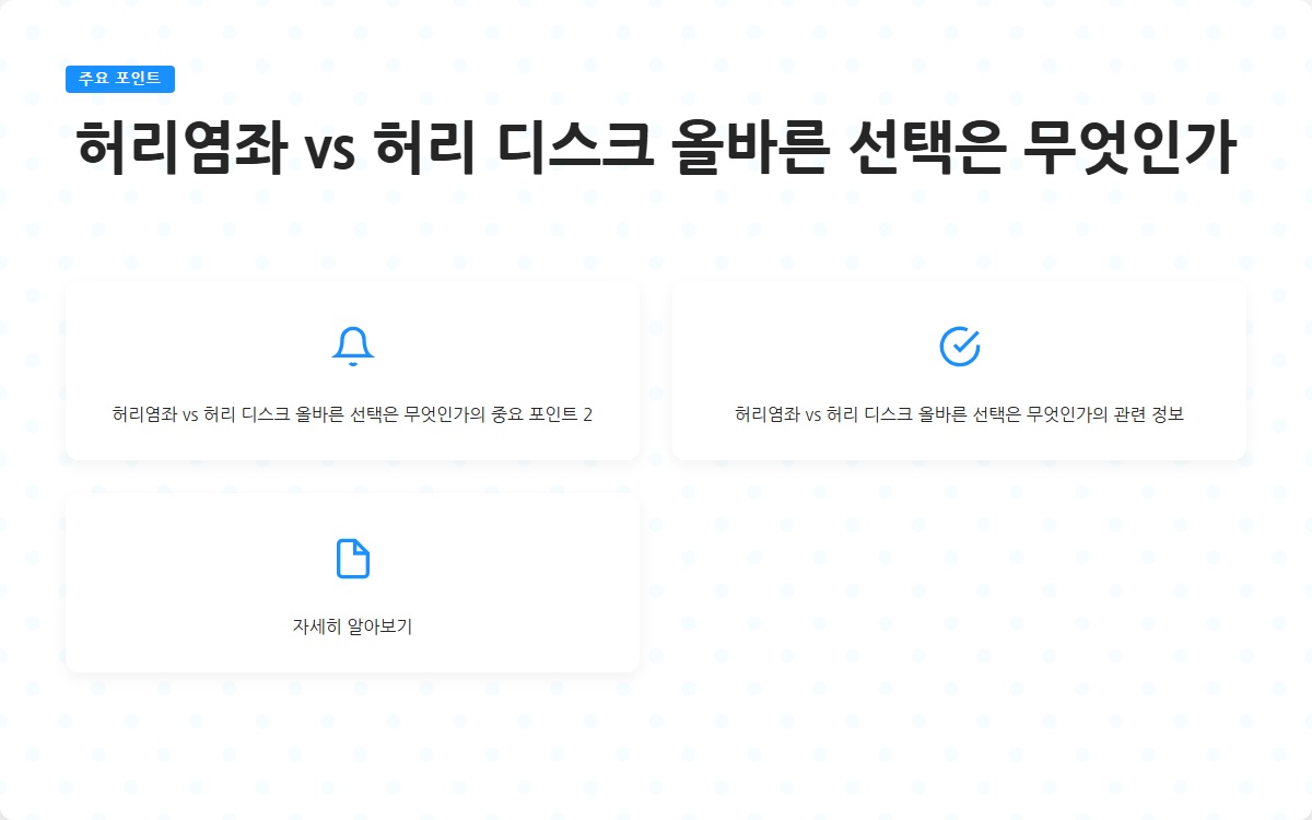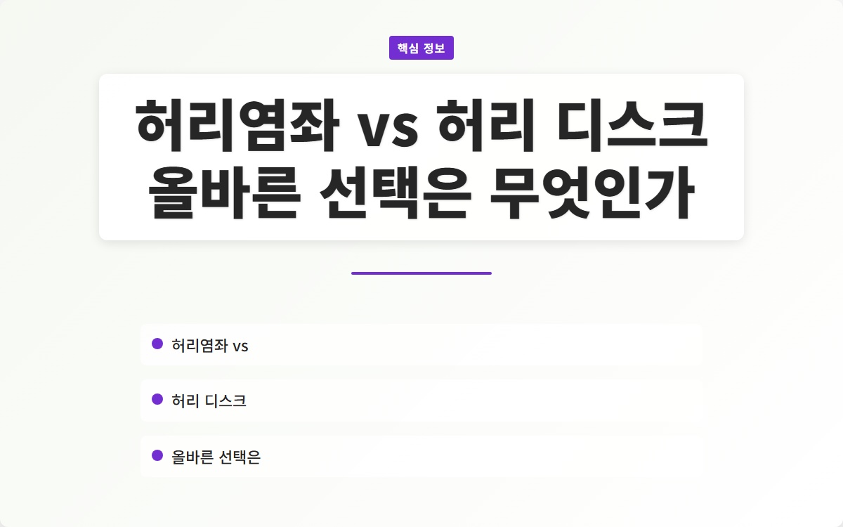 허리염좌와 허리 디스크의 차이를 이해하고, 적절한 치료법을 선택하여 건강을 회복하는 것이 중요합니다. 오늘날의 선택이 내일의 건강을 좌우합니다.